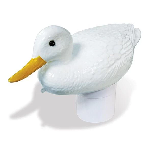 Cute and whimsical, this chlorine dispenser look like a white duck going about her business in the pool.