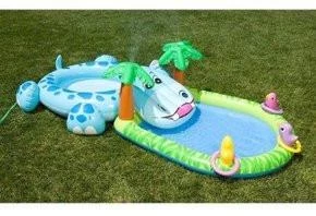 Give your child a safe place to splash around with this inflatable play center by Intex. It works as two wading pools with a small slide. As an added convenience, a repair patch comes included.