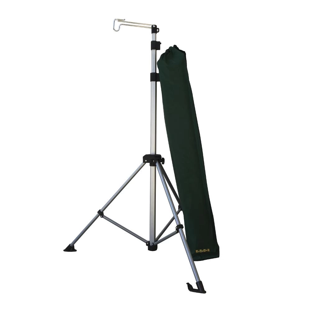 Portable, adjustable stand. Includes stakes for a sturdier experience.