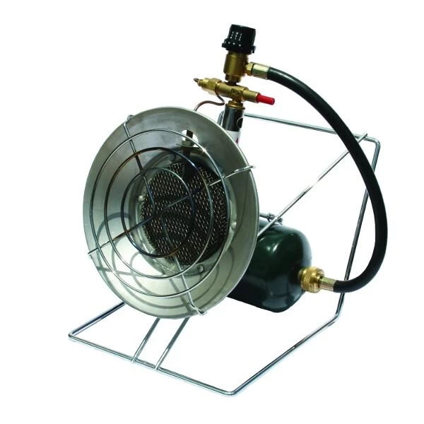 This great multi-purpose heater/cooker is a must have for those cold days before the campfire fun. This propane fueled device has a frame that can be positioned upward to use as a stove cooker, or set in the downward position to be used as a heater. Using up 10,000 BTUs this burner features an on/off control knob with adjustable settings, and an auto-shut off feature so when the flame goes out the fuel turns off. Stay warm and well fed on your next outing with our Propane Heater/Cooker!