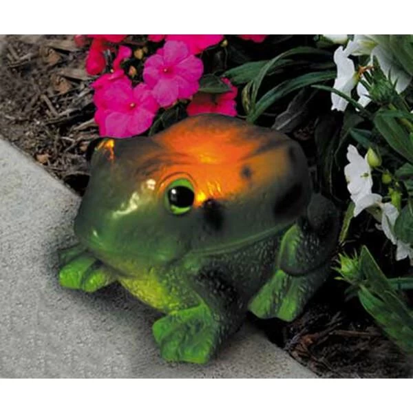 Our solar powered frog light adds a delightful touch to any yard or garden. His hidden solar panel charges up during the day, and the light comes on at night bringing a warm glow to his surroundings.