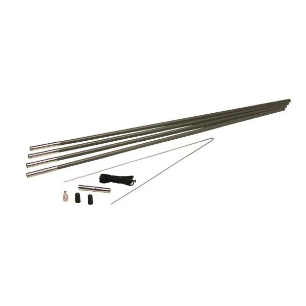 This is a tent pole replacement kit that includes four 25 5/8″ fiberglass tent poles, zinc coated steel ferrules, 10′ of elastic shock-cord, 29″ of leader wire, two vinyl pole caps and instructions.