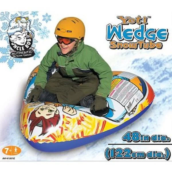 The wedge snow sled by Uncle Bob’s features a fast design that maximizes speed and two grab handles for stability and maneuverability. This sled is for single riders.